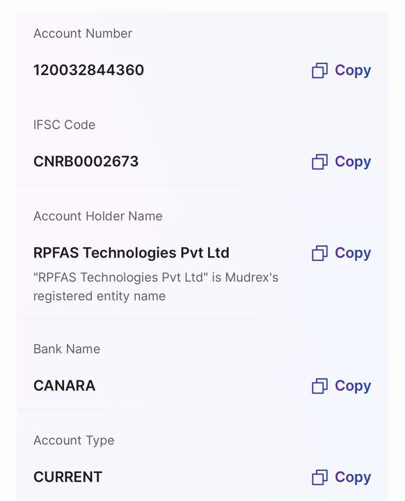 - Copy Mudrex beneficiary details from the App you can also refer: