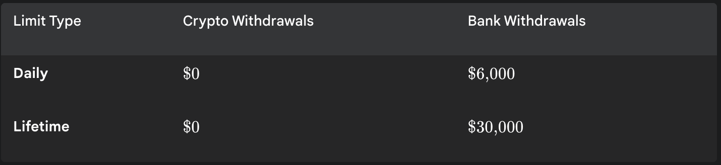 Your maximum withdrawal limits are based on your Limit Level (verification tier). Higher verification levels unlock higher limits.